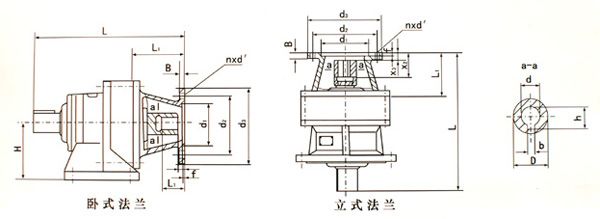 | 尺寸系列 機(jī)型號(hào) | 電動(dòng)機(jī) 功率KW | 電動(dòng)機(jī) 機(jī)座號(hào) | L | L1 | H | B | f | d1(公差) | d2 | d3 | d(公差) | D | h | b | nxd | |||